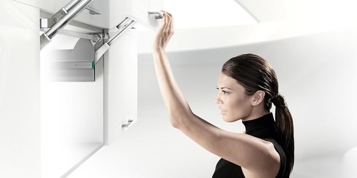 Schwere Frontklappen präzise und parallel zum Oberschrank zu bewegen – das ist der funktionale Anspruch des Kinvaro L-80.