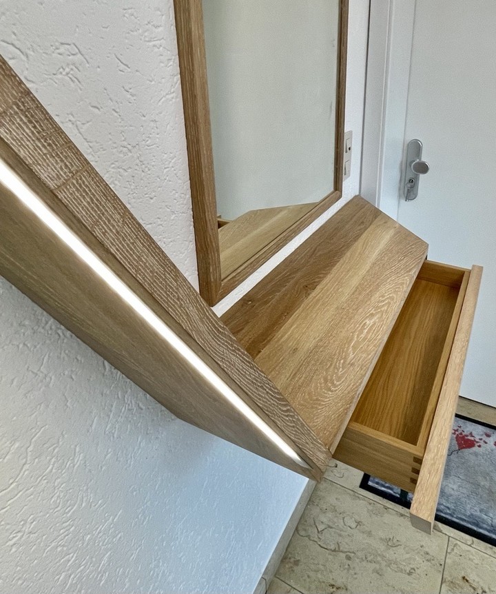 Die #beleuchtung darf nicht fehlen, wie auch die #echtholz #schublade für Deinen #schlüssel oder dein #portemonnaie .