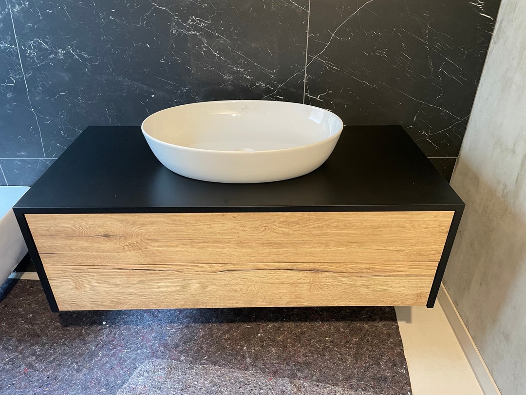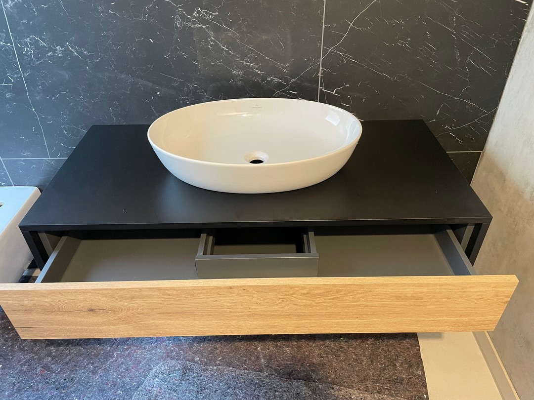 #vorgestern in der #werkstatt und hier im #bad montiert. Hier seht Ihr eine Front von @eggergroup #Halifax #Eiche #natur.